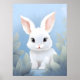 Add a touch of nature and cuteness to any room with this sweet baby rabbit poster. The illustration features a fluffy white bunny with adorable eyes, set against a serene blue background with soft foliage. This charming and high-quality design is perfect for nurseries, children's rooms, or any space that needs a bit of warmth and whimsy. Ideal for animal lovers and those who appreciate cute and heartwarming art, this poster captures the innocence and beauty of a baby rabbit in a peaceful natural setting.
