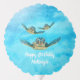 This design features three cute baby sea turtles swimming in a sea blue ocean.