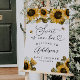 Rustic bee theme baby shower welcome sign featuring watercolor illustration of sunflowers and baby's breath with bumblebees. The text says "sweet as can bee." Perfect for a summer shower.
