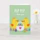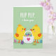 This card shows two small, stylized yellow birds with orange beaks and feet, standing on a soft pastel-green ground and leaning slightly toward each other as if sharing a quiet, affectionate moment 🐇. Their rosy cheeks and upward-tilted eyes draw attention to a white woven basket placed between them, making the center feel like a shared treasure. On the basket’s front sits a bright pink heart, hinting at friendship and gentle romance without needing any extra symbols. Inside the basket are decorated egg shapes in purple, blue, green, and pink, each dotted with tiny white spots for texture. A few more egg shapes rest on the ground nearby, loosely scattered to keep the scene light and airy 🌷. Across the top, a short message appears in rounded white lettering, centered and spaced so it floats clearly above the characters. The background stays simple and softly lit, with the white basket and pink heart standing out against the green floor and the birds’ sunlit yellow feathers. The upper text is white, and the basket below is white with a pink heart and multicolored dotted eggs.