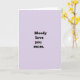 This greeting card features a soft lavender-purple background that sets a gentle, affectionate tone ❤️. Centered on the front is a four-line message that reads “Bloody love you mum.” in a thick, rounded sans-serif style that feels friendly and close, like words said with a warm smile. The letters appear in a deep near-black color, standing out clearly against the pale backdrop for an easy-to-read contrast. With no characters or extra objects in the scene, the open space around the words gives the message room to breathe and keeps the focus on that intimate connection. The layout feels like a quiet moment between family members, where the straightforward phrasing carries a tender edge rather than anything flashy 🌼. The text sits squarely in the middle, evenly spaced line by line, with the color staying consistent throughout. Along the very top and bottom edges, the background shows a subtle textured, slightly uneven border, like softly torn paper or a brushed digital grain.