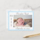 An easy, affordable and adorable way to announce the arrival of your beautiful baby boy. White postcard bordered in blue, with fancy text, saying, "It's a boy," with baby's name and birth date on the front. On the back is a little teddy bear with an area for you to put all the birth details such as when and where the baby was born and how much hw weighed.