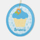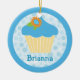What a perfect ornament for your girly girl (or grownup) who just can't get enough cupcakes! A vanilla cupcake blue icing on this ornament looks good enough to eat. This ceramic ornament can be used as much more than a Christmas ornament. Use it in kid's rooms as fan, blind or light pulls, or add a suction cup and hang it anywhere! Available in alternate cupcake and color designs with matching products.