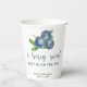 Cute baby shower invitation card featuring watercolor illustration of blueberries. The text says "a berry sweet baby is on the way." Matching items available.