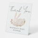 Sweet Bunny Calligraphy Baby Shower Thank You Pedestal Sign