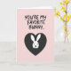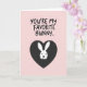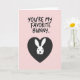This card features a soft blush-pink background that sets a gentle, affectionate mood 🌷. The layout is split into two clear sections, with the top half reserved for a large, freehand-style message in deep charcoal black. The letters look slightly uneven in a natural way, like a note written for someone you care about, and they sit centered with plenty of breathing room around them. In the lower half, a large solid black heart anchors the design, giving the page a cozy, close-to-you feeling. Inside the heart, a simple white bunny face appears, with long ears reaching up toward the heart’s top curve, as if leaning in for attention 🐰. The bunny’s features are minimal—two dot eyes, a small triangular nose, and short whisker lines—creating a sweet, friendly expression that pairs well with the romantic heart shape. The contrast of black and white against the pink background keeps everything easy to read while still feeling soft and intimate. The heart is centered near the bottom, with the white bunny face framed neatly inside it.