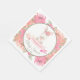 This sweet baby shower napkin is perfect for a baby girl. The design features a cute bunny with a circular frame of pink watercolor flowers. There is a banner across the bunny where you can add your name in handwritten script. Put the date of your event at the bottom of this adorable shower napkin for a baby girl.