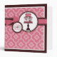 Deep pink floral damask print with elegant cake and 3D look ribbon bows and tags.
