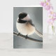 Blank greeting card featuring photo of a sweet Black-capped Chickadee bird.