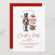 "Warm wishes for a delightful Christmas season! Join us for a magical Christmas-themed party, adorned with a charming nutcracker and sweet candy cane. Let's celebrate in style with elegant red typography set against a serene white background. You won't want to miss this festive gathering!"
