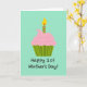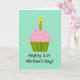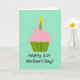 This design shows a stylized cupcake centered on a wide, soft aqua background, giving the scene a calm, open feel. The wrapper is olive green with fine vertical lines, grounding the treat like a steady companion in the middle of the page. Above it, a generous swirl of pastel pink frosting curves in smooth waves, like a gentle hug ❤️. A slim green candle rises from the frosting, decorated with diagonal fuchsia stripes that add a flirty, friendly spark. At the top, a small yellow flame flickers with a warm glow, hinting at a shared wish without saying it out loud 🌼. Beneath the cupcake, a short celebratory message sits in dark lettering, centered and easy to read against the light background. The illustration keeps its shapes simple and flat, with the pink frosting, green wrapper, and striped candle standing out crisply on the aqua field. The flame is a bright yellow teardrop with a tiny orange accent at its core.