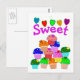 "Sweet" Cupcake Stack with Bright Hearts Postcard