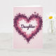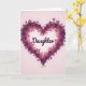 This design shows a heart-shaped frame formed from layered flowers and curling greenery, like a gentle embrace around the center. Deep magenta and plum blossoms ring the heart, with small leafy vines weaving between petals to create a tender, close-knit look that feels like family affection ❤️. The petals shift slightly in tone, giving soft depth as if light is brushing across the floral edges. Inside the heart, the word “Daughter” sits centered in flowing dark lettering that contrasts clearly against the pale background. The background is a blushing pink wash that fades lighter near the middle and deepens toward the edges, adding a quiet, romantic warmth 🌼. Decorative curls extend from the lower point of the heart, echoing the vine shapes and guiding the eye back upward. The floral border appears fullest at the sides, with clustered blooms and fine tendrils tracing the heart’s outline. The final detail is a pair of delicate, curling flourishes at the base in matching botanical tones.