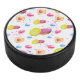 Sweet donuts with colourful glaze pattern hockey puck