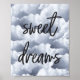 Sweet Dreams Wall Art Poster with cloud background perfect for nursery.