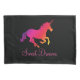 A multi colored psychedelic unicorn with the words "Sweet Dreams". The back has a tiled pattern of the unicorn