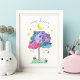 Drift off to dreamland with this charming and imaginative tree poster print, perfect for a nursery or kid's bedroom! This magical frameable art print features an original whimsical watercolor painting of a pink, purple, and blue tree covered in cute sleeping birds and shining stars hanging from its branches. The soft colors and calming scene are ideal for a nursery to help baby drift off to sleep. Download the print and print at home yourself so you can customize the size and framing however you'd like. With its soothing style, this poster adds a special handmade touch to any child's room. Inspire sweet dreams with this magical bedtime artwork!