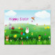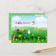 Tender chicken,bunnies,easter eggs,birds and butterflies on the spring meadow wishing "Happy Easter" Text and background color (on back)are totally personalizable as well you prefer.