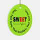Lightweight, smooth, pure white ornament with nice sheen. Perfect size to be seen from across the room ... and to attract closer inspection! Price was great for ordering enough for the whole family! Clear, bold black design just as requested. Matches the order exactly. Just so nice!