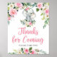 Sweet Elephant blush pink floral thank for coming sig 8x10 poster girl baby shower. Contact me for matching items or for customization, Blush Roses ©