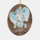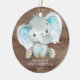 Baby's First Christmas Ornament features a sweet little elephant set on a rustic wood forest scene background. Personalize with your baby information and date and you're all set to go! Wonderful dated keepsake gift for your baby's 1st christmas.