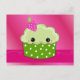 A fun whimsical design featuring a sweet face cupcake with polka dot accents.