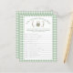 Green gingham fairytale theme animal theme green & white background “Who Knows Mommy Best” paper sheet game. Just as sweet as can be for a baby shower.