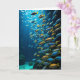 This design shows an underwater scene where a large group of small fish moves together like close friends keeping pace side by side, their bodies angled in a sweeping diagonal from the bright upper left to the darker right. Sunbeams pour down through clear blue water, catching on silvery scales and making the nearest fish sparkle as they pass one another with a gentle, companionable closeness. Cooler blues dominate the water, while flashes of orange fish weave through the group like warm glances in a crowd, adding contrast and a soft sense of connection. Fine patterns on the fish are visible up close, and the light fades into deeper tones toward the foreground, giving the scene depth and calm motion. A short line of text sits near the top left in small white lettering, and a second line rests near the lower right in pale gray, spaced to follow the flow of the school. The overall look feels steady and coordinated, like a shared journey where no one gets left behind, with a subtle nod to teamwork 🛠️. Dark, rugged rock shapes line the bottom edge, textured and shadowed against the glowing water above.