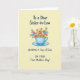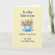 This card features a pale butter-yellow background that sets a calm, cozy scene for a family moment. In the center, a light blue teacup and matching saucer hold three cuddly bear figures, with the larger one wrapping its arms around two smaller ones in a gentle, protective cuddle ❤️. Pastel flower sprigs curl around the cup, mixing soft pink, light blue, sunny yellow, and light purple blossoms with fresh green leaves for a sweet, friendly feel 🌼. The bears have rounded shapes and simple, expressive faces, and their close pose suggests affection and togetherness without needing extra words. Near the top, the line “To a Dear Sister-in-Law” appears in deep blue lettering, placed above the teacup like a header. Near the bottom, the message “SENDING A Cup of Love ON YOUR First Mother's Day!” is set in the same deep blue, centered beneath the saucer. The overall look is smooth and softly shaded, with the flowers and cup arranged to guide your eye toward the hugging trio. Small clusters of blossoms sit to the left and right of the cup, with green leaves peeking out between the petals.