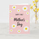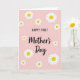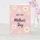 This card features a vertical layout on a soft pastel pink background, setting a gentle, affectionate tone ❤️. Near the top, the words “HAPPY FIRST” appear in black, using a simple sans-serif style that feels direct and steady. Centered beneath, “Mother’s Day” is written in flowing black lettering, adding a tender, intimate touch like a warm note shared between close family 👩. The text sits prominently in the middle, leaving breathing room around it so the message feels calm and focused. Across the background, daisy-like flowers are scattered in a loose pattern, suggesting a light, celebratory moment without looking stiff or overly arranged. Each bloom has white petals with sunny yellow centers, and the flower sizes vary to create a soft sense of movement around the words. The pink field is dotted from top to bottom with these white-and-yellow blossoms, with several floating near the corners and along the sides.