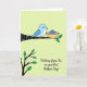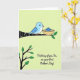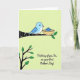 This card shows a stylized sky-blue bird with polka-dotted wings perched on a dark branch, leaning forward as if keeping a gentle watch over a snug nest ❤️. The nest has a lightly textured look with small floral details, and it cradles a single egg striped in deep blue and white, giving the scene a tender, caring focus. Behind everything, a chartreuse background with diagonal stripes adds a fresh springtime feel without distracting from the bird and nest. In the lower left, a second slim branch with green leaves balances the layout and suggests a quiet moment of growth and closeness. The bird’s calm posture and the way it faces the nest create a soft, affectionate connection, like someone checking in on a loved one 🌼. Centered below the illustration, the message “Thinking of you, Sis, on your first Mother’s Day!” appears in a flowing, cursive-style font. The lettering is set in a coordinating dark tone that stands out clearly against the lighter background. The dark branch angles across the upper area while the leafy branch sits low on the left, framing the nest near the middle.