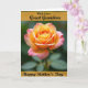 This greeting card features a single flower centered in the frame, its layered petals opening like a gentle embrace that suggests closeness and affection ❤️. Soft, diffused light falls across the bloom, bringing out a smooth gradient that moves from golden yellow at the center into orange, then peach, and finally a blush pink along the outer edges. A deep, softly blurred field of leafy greens sits behind it, keeping the focus on the flower while adding a calm, intimate mood. Near the top, a short line of text appears in a light-colored font that stands out against the darker background without overpowering the image. A second, smaller line sits closer to the lower portion, also in a pale tone, spaced neatly so the petals remain the main attraction. Fine veins and slight ripples in each petal add texture, like a quiet detail shared between close friends 🌼. The flower’s glowing center is ringed by warm orange tones that fade into pink tips against the green blur.
