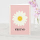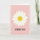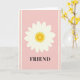 The front design shows a large stylized flower centered on a soft blush-pink background, drawing your eye straight to its open face like a gentle offering between close friends ❤️. White petals spread outward in neat layers, lightly warmed with cream tones that soften the edges and keep the look calm and inviting. At the flower’s core, warm yellow and orange rings glow together, like a shared laugh or a fond memory held between two people. The background has a faint fabric-like texture that adds a cozy, close-to-home feel without looking busy. Two pale ivory vertical stripes sit near the left and right edges, creating simple borders that quietly frame the bloom. Near the bottom, the word “FRIEND” is set in uppercase dark serif letters, centered and easy to read against the pink field 🌼. The flower’s white petals surround a bright yellow-and-orange center, with ivory side stripes standing straight along both edges.