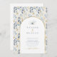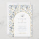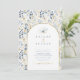 This elegant wedding suite features delicate floral and foliage designs in a dusty blue and gold color scheme for a cohesive and stunning wedding theme. The invitation shown here showcases a sweet floral pattern and trendy arched frame, adding a touch of romance and sophistication to the overall look. Perfect for couples looking for a timeless and beautiful design for their special day. Add your names and wedding date easily using the provided template. Search ID1045 to see other products in this wedding design set.