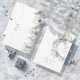 This elegant wedding suite features delicate floral and foliage designs in a dusty blue and gold color scheme for a cohesive and stunning wedding theme. The Save the Date card shown here showcases a sweet arched floral border and gold foil-effect accents, adding a touch of romance and sophistication to the overall look. Perfect for couples looking for a timeless and beautiful design for their special day. Add your names and wedding date easily using the provided template. Search ID1045 to see other products and color choices in this wedding design set.