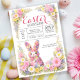 Ideal for family lunches, egg hunts, school events, or springtime celebrations, this design sets a sweet and festive tone from the moment guests receive it. The delicate floral details paired with the cute bunny illustration make it both elegant and playful—perfect for bringing friends and loved ones together for a joyful Easter celebration.