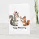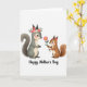 This card shows two cute, human-like woodland animals facing each other on a plain white background, sharing a quiet, affectionate moment ❤️. The taller one has soft gray fur and a gentle stance, wearing a crown of pale pink and white flowers with green leaves that frames its face like a loving welcome. The smaller one, with warm brown fur, leans forward slightly as if mustering sweet courage, offering a bright pink, daisy-like flower with a sunny yellow center 🌼. Their rosy cheeks, big dark eyes, and small smiles create the sense of close friendship, like a thank-you shared without needing many words. Subtle shading along their fur and curved tails adds a cozy softness while keeping the scene simple and airy. Near the top, a short Mother’s Day message sits in a light, soft-toned color that doesn’t overpower the illustration, with a smaller line of text placed below it in a matching shade. The pink flower stands out most, held between them at chest height, with crisp petals and a round yellow center.