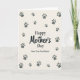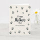 This card features a pale cream background that feels calm and cozy, with a sweet message centered as if it’s being offered with a gentle smile ❤️. The main line reads “Happy Mother’s Day,” with “Happy” and “Day” in a classic serif style in dark charcoal gray, while “Mother’s” is written in a flowing brush-lettered look that adds a soft, affectionate touch. Beneath that, the smaller line “from Your Fur Babies!” sits centered in the same dark charcoal gray, like a warm note tucked under the greeting. Around the text, scattered paw prints in dark charcoal gray drift across the open space, suggesting little companions padding nearby and circling close. The paw marks vary in size and angle, creating the sense of a friendly trail that frames the words without crowding them. The roomy spacing keeps the focus on the message while the paw prints add a tender, companionable energy, like pets gathering around their favorite person 🌼. Several paw prints appear near the edges, each with clearly defined pads and toes against the creamy background.