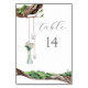 These beautiful Sweet Garden table numbers are the perfect addition to any elegant wedding. Tree branches with hanging candles and a vase full of flowers.