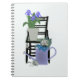 A sweet gardening journal for anytime, illustration shows watering can, Iris's and a old garden chair with watering can.