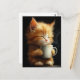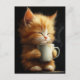 An adorable happy ginger kitten with a mug of coffee or hot chocolate fantasy art