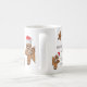 Cute Festive Christmas Gingerbread Man Coffee Mug. Design features a classic white background decorated with watercolor tasty gingerbread men and women biscuits with some wearing a red santa claus hat. The sweet saying 'Gingerbread kisses and Holiday Wishes' and the family name.