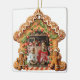 This fun Christmas photo ornment features an AI generated candy covered Gingerbread photo frame that is perfect to highlight your favorite holiday photo. On the back is another gingerbread house with a place to personalize with names and the year.