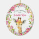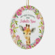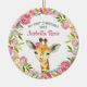 Baby's first Christmas ornament features a sweet little watercolor giraffe with a pretty watercolor floral wreath. Personalize with your baby name and date. A cute keepsake gift for baby's 1st Christmas.
