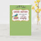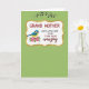 This card features a pale green background with faint diagonal lines that add gentle movement across the surface. Near the top center sits a curving frame with a bright white interior and a shiny gold border that looks lightly dusted with glitter. Floating above the frame, small black musical notes curl upward, as if a sweet tune is drifting through the air ❤️. Inside the frame, “GRAND MOTHER” appears in large red letters, with “JUST A LITTLE NOTE TO SAY I THINK YOU’RE” in smaller black lettering beneath it. The word “amazing” follows in a flowing black handwritten style, giving the message an affectionate, close-to-the-heart feel. On the left side of the frame, a small blue-and-yellow bird with black-and-white accents leans toward the words like it’s delivering the note with care 🌼. The bird is tucked beside bright pink blossoms and fresh green leaves, with the petals clustered close against the white space of the frame.