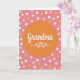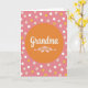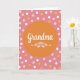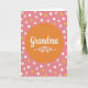 This card features a large orange circle centered on a coral-pink background, creating a cozy focal point that feels like a warm hug ❤️. Inside the circle, the word “Grandma” appears in flowing white lettering, placed prominently across the middle so it’s the first thing you notice. Just below the word, a small mirrored floral accent in soft pink sits like a gentle flourish, adding a sweet, affectionate touch. Around the circle, scattered dots in different sizes look like lightly painted spots, giving the scene a relaxed, friendly energy rather than a stiff pattern. The dots shift between white, pale beige, and sunny yellow 🌼, making the background feel bright and welcoming. The lighting looks even and soft, letting the warm oranges and pinks blend smoothly without harsh shadows. The overall layout keeps the text clear and centered while the background adds movement, like cheerful confetti around someone you adore. The coral field is sprinkled with round spots that vary in scale and spacing, with a few golden-yellow circles standing out near the edges.