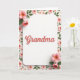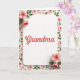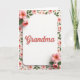 Designed with a spacious white center panel framed by soft floral details, this card feels calm and affectionate at first glance ❤️. In the middle, a rounded rectangle of bright white sits like a neat label, leaving plenty of breathing room around the main word. The text reads “Grandma” in a smooth, flowing style, placed centrally and colored a gentle coral that warms the page. Around the edges, clusters of pale pink blossoms and fresh green leaves curl inward, like a quiet hug from the border. The flowers range from small buds to open blooms, and some petals show a deeper orange tint near the centers, adding a tender, cared-for look 🌼. Subtle shading gives the petals and leaves a slightly raised, sculpted feel, with soft shadows that make the arrangement look touchable. The overall lighting stays diffused and gentle, keeping the whites bright while the greens and pinks remain soft and soothing. Along the perimeter, the wreath-like border forms an even frame of blossoms and leaves, with tiny shadows tucked beneath overlapping petals.