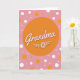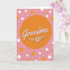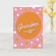 This greeting card centers on a large warm orange circle that draws your attention right away, like a cozy spotlight on someone you adore ❤️. Inside the circle, the word “Grandma” sits prominently in soft light pink lettering with a faint lighter outline that helps it stand out. Just below the word, a simple flower appears, with pale pink petals around a bright yellow center, and slim leafy curls stretching outward like a gentle hug. The background is a light pastel pink, giving the whole scene a calm, affectionate mood that feels like a fond memory shared between family. Scattered across the backdrop are round dots in different sizes, some orange to echo the center and others white for contrast, creating an easy, friendly rhythm. The text stays contained within the orange circle while the floral detail sits beneath it, keeping the layout tidy and focused 🌼. White and orange polka dots float across the pink background, with the largest orange orb placed in the middle and smaller circles sprinkled around it.