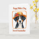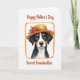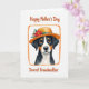 This card features a close-up portrait of a loyal tri-colored dog with black, white, and warm tan markings, painted with soft shading that makes the fur look gentle to the touch. The dog wears a straw-like hat with a golden-orange brim, trimmed with red roses, sunny yellow flowers, small pink clusters, and green leaves that feel like a sweet gift placed with care ❤️. Its amber eyes look straight ahead with a tender, trusting gaze, like it’s sharing a quiet moment with someone it adores. A textured orange frame surrounds the portrait, adding a cozy, rustic touch against the bright white background. Near the top, reddish-brown handwritten-style lettering reads “Happy Mother’s Day,” standing out clearly without crowding the artwork. Lower on the card, the same reddish-brown text reads “Dearest Grandmother,” positioned to balance the dog’s face and the floral hat 🌼. The flowers sit along the hat’s brim, with red and yellow blooms clustered near one side and pink accents tucked between glossy green leaves.