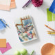 I was super excited when I got my cover in. It is attached by a magnet across the edge. I don’t think it will be very protective but it is very cute. I’m going to keep my iPad in a sleeve and use this face cover while I have it out. It folds to create a tilt for better viewing and to keep the iPad at a slight angle for typing. The colors are bright and it is fun. I’ve really enjoyed it. The personalization looks like amazing. It is the same color as the picture and is the same brightness. Well done! Very nice.